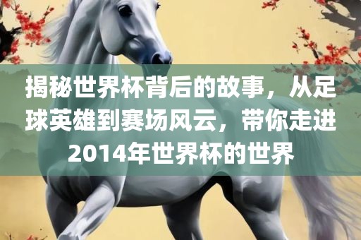 摘要:本文将带你走进2014年世界杯的世界,揭示背后不为人知的故事。从足球英雄到赛场风云,感受赛场上的激情与荣耀。一起领略世界杯的魅力,体验足球带来的激情与热血。跟随本文,你将深入了解世界杯背后的故事,感受足球的力量和荣耀。