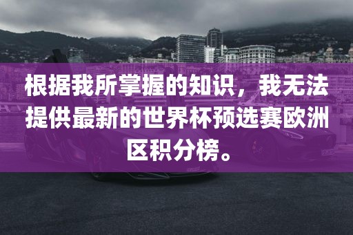 摘要:由于我所掌握的知识有限,无法提供最新的世界杯预选赛欧洲区积分榜。建议关注官方渠道或体育新闻以获取最新、最准确的积分榜信息。