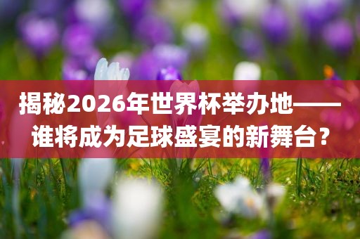 摘要:本文将为您揭秘2026年世界杯足球赛的举办地。经过激烈的申办竞争,最终目的地逐渐浮出水面。届时,足球盛宴将在新舞台上展开,吸引全球的目光和关注。本文将介绍申办过程中的亮点和悬念,以及举办地可能面临的挑战和准备工作。期待这场足球盛宴的到来,为世界带来激情与欢乐。
