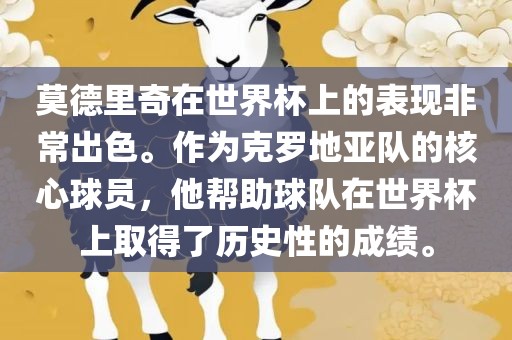 莫德里奇在世界杯上的表现令人印象深刻,是克罗地亚队取得优异成绩的关键因素之一。