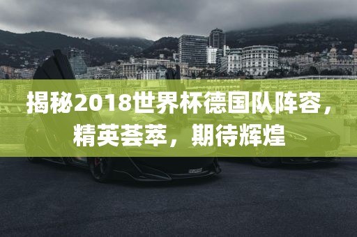 摘要:本文将为您揭秘2018年世界杯德国队的阵容,这支队伍精英荟萃,备受期待。通过本文,您将了解到德国队的球员名单、球队战术风格以及球员的实力分析等信息。德国队一直以其强大的实力和稳定的战绩备受瞩目,本次世界杯更是备受期待能够再创辉煌。让我们共同期待德国队在世界杯赛场上的精彩表现。