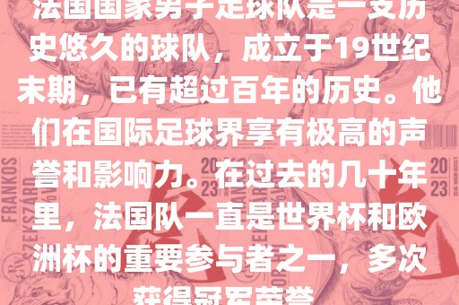 法国国家男子足球队是一支历史悠久的球队,成立于19世纪末期,已有超过百年的历史。他们在国际足球界享有极高的声誉和影响力。在过去的几十年里,法国队一直是世界杯和欧洲杯的重要参与者之一,多次获得冠军荣誉。