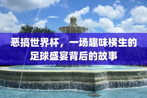 恶搞世界杯并非凭空出现,其起源可追溯到早期足球文化,随着互联网的普及和社交媒体的兴起,恶搞世界杯逐渐成为一种独特的文化现象,恶搞世界杯已经成为一种全球性的文化现象,吸引了无数网友的关注和参与。